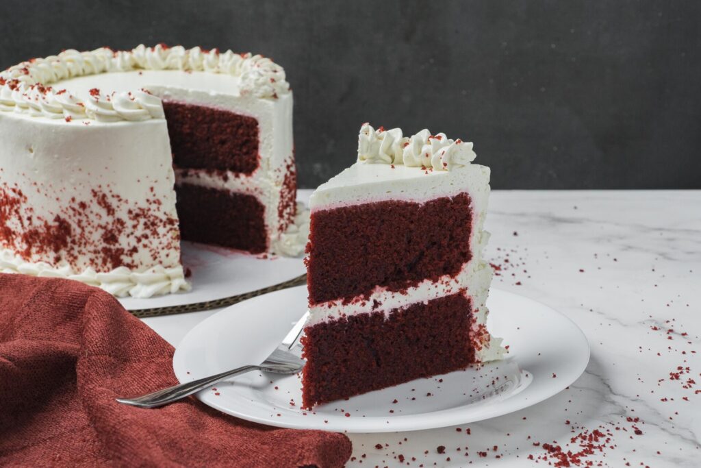 - Add in the red velvet cake mix and beat at low speed for 1 minute.